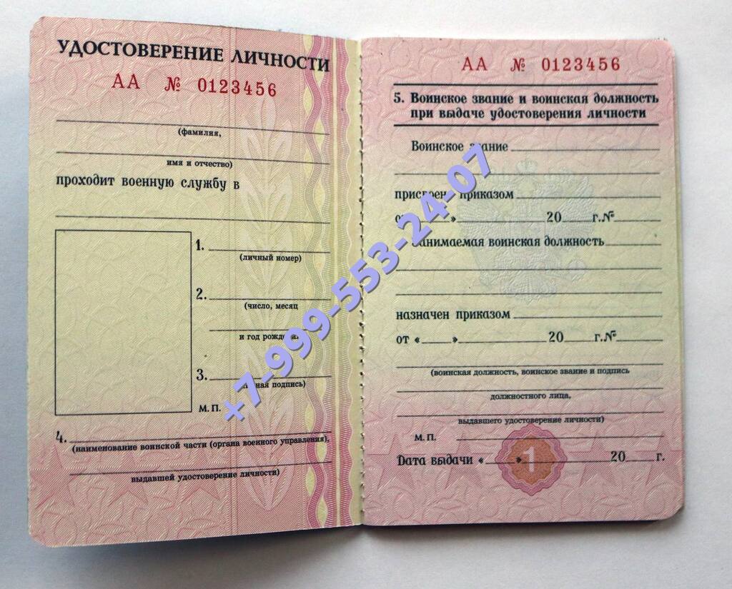 Удостоверение личности военнослужащего с правом ношения личного оружия, чистые и заполненные, серия номер любые.